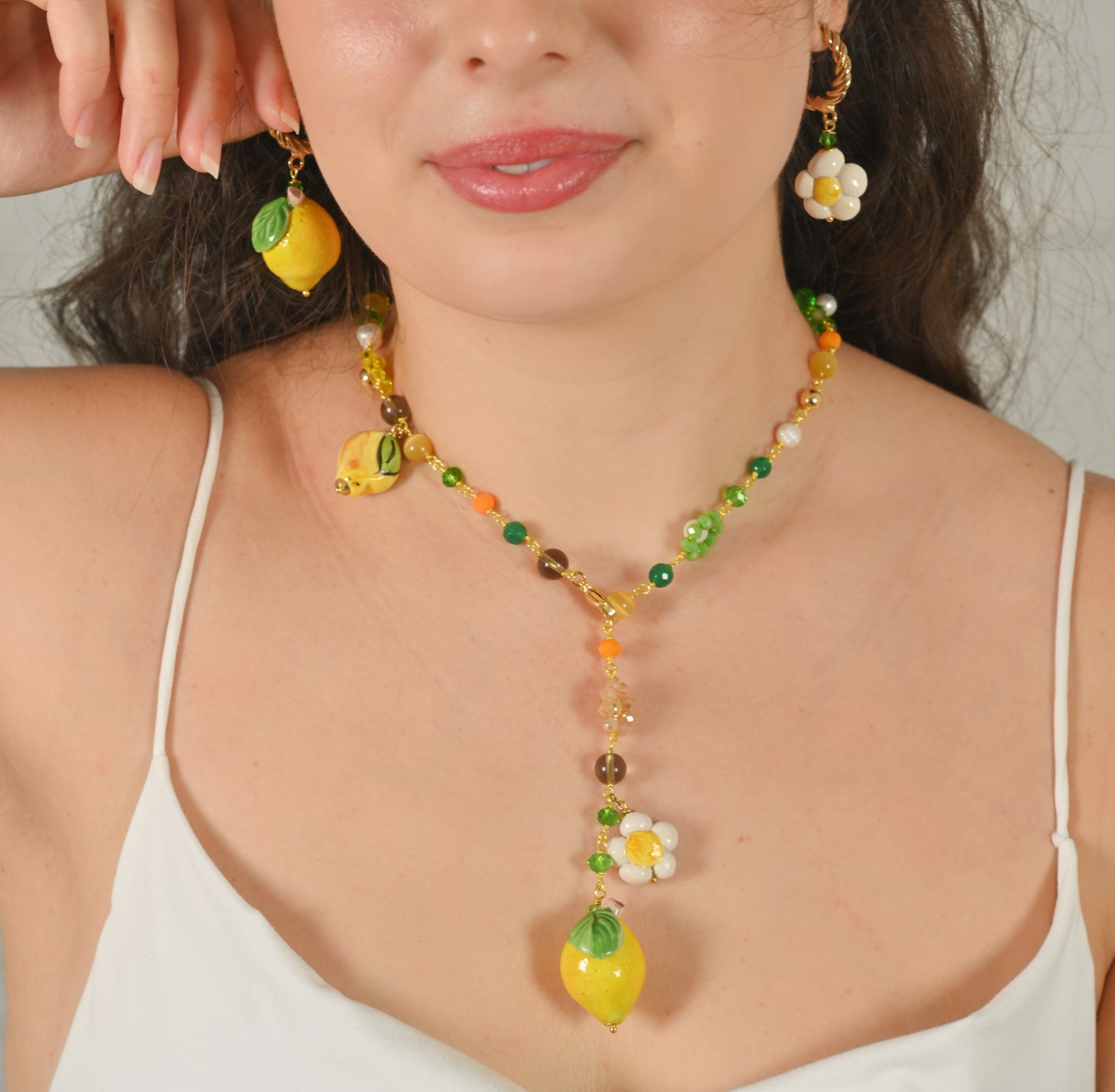 Gli Orecchini Limone sono perfetti per chi vuole portare un pezzo di sole e originalità nel proprio stile, con il loro design duale evocano immediatamente l'atmosfera solare e mediterranea: un orecchino sfoggia il limone e l'altro presenta una delicata margherita bianca, entrambi realizzati in ceramica modellati e dipinti interamente a mano. I pendenti sono abbinati a cerchi aperti in bronzo galvanizzato oro 18k caratterizzati da un'elegante lavorazione a torciglione.